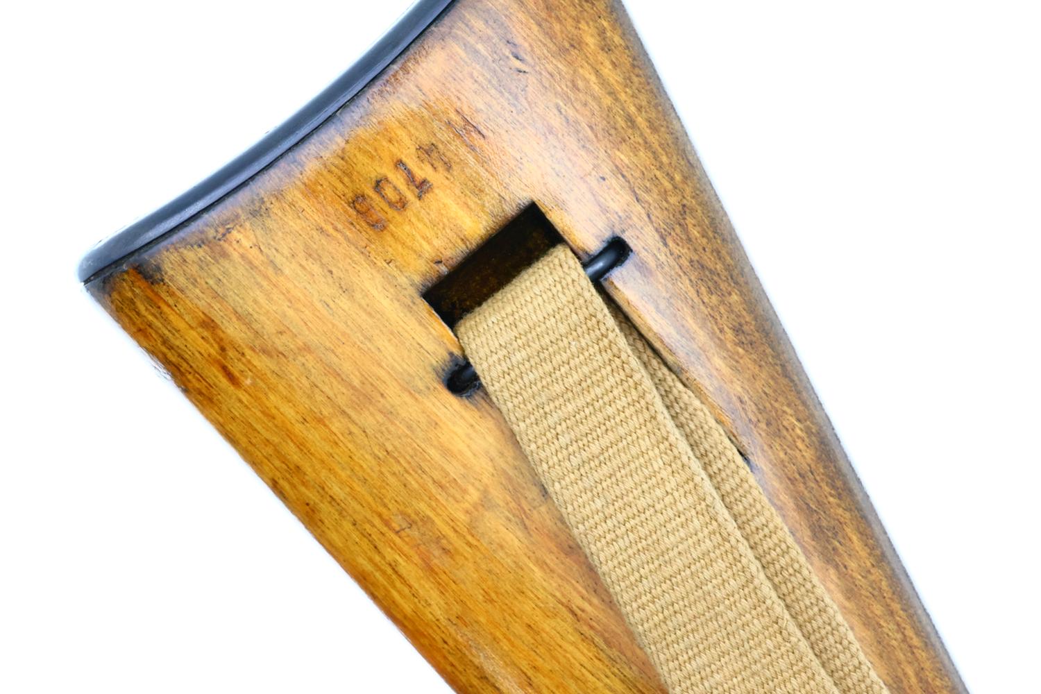 Excellent as completely refurbished: barrel/action, all fittings, and stock, but showing little use after assembly. Crisp optics with mild yellowing, perfect reticle. Excellent, near-mirror bore and sling. Correct manual mechanics.