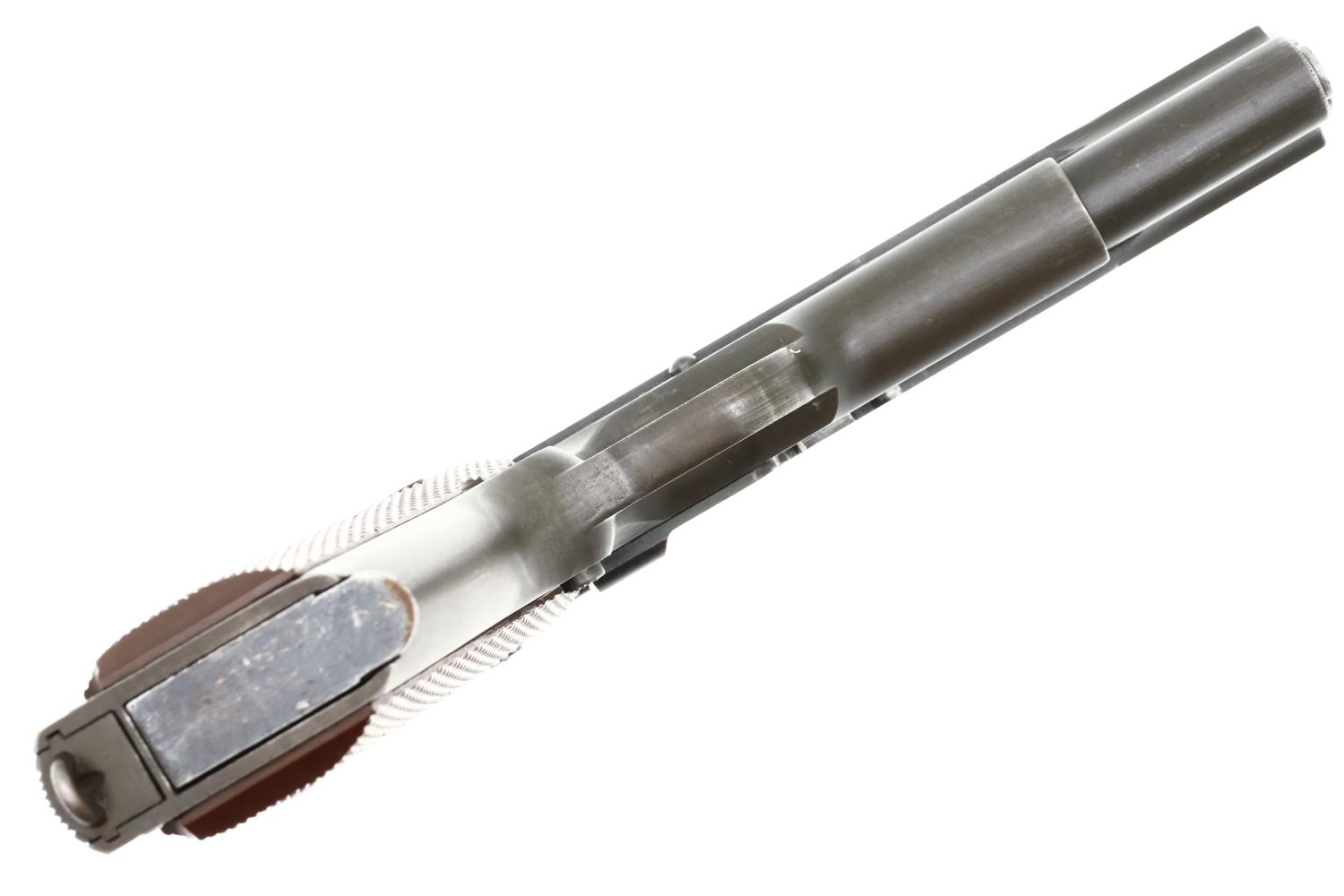 Near excellent original condition with sharp edge wear and handling as one might expect from a service pistol that was in use for approximately two years. Comparable condition grips. Magazine with insertional wear as pictured. Mirror bore. Correct manual mechanics.