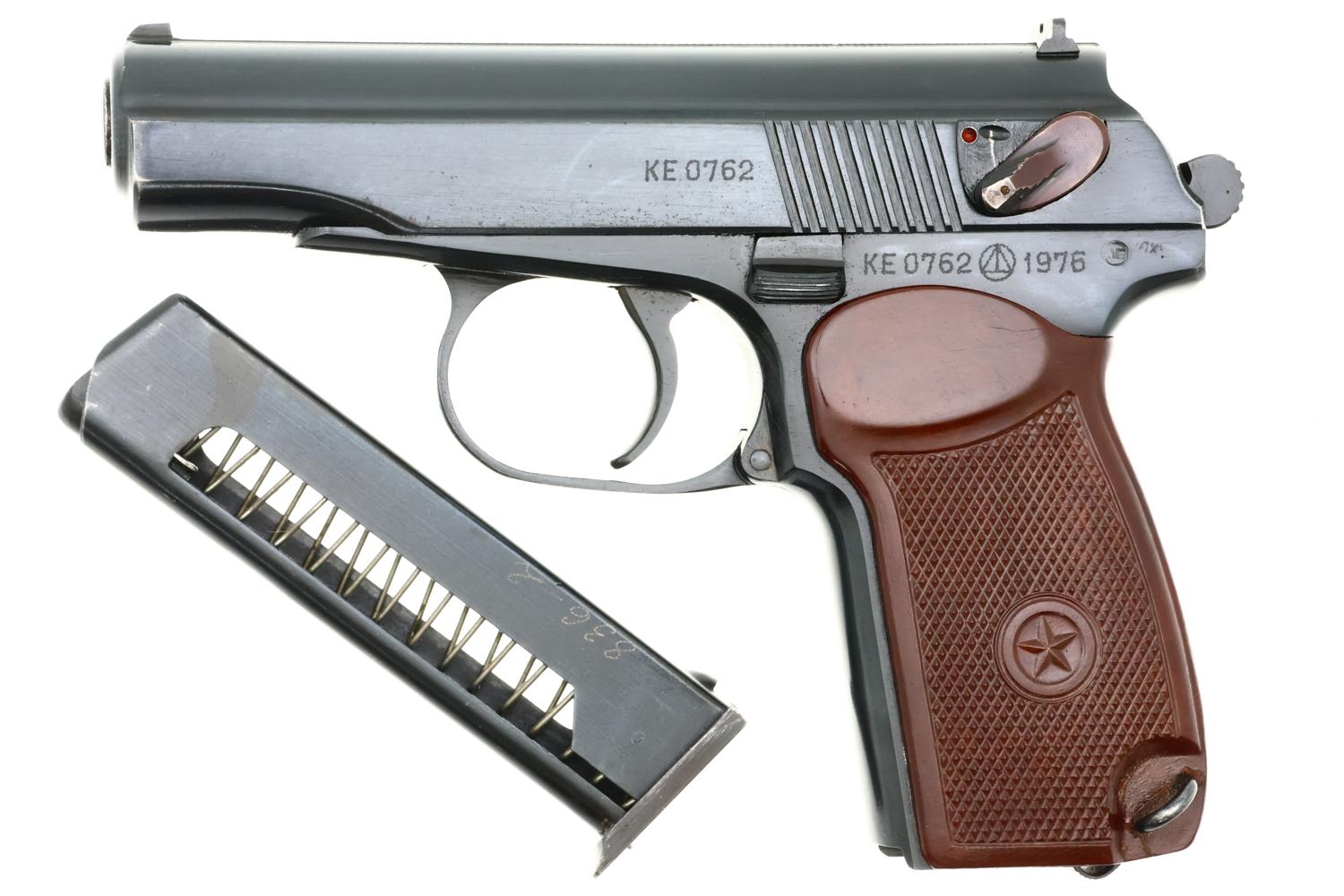 Excellent original condition Russian military Makarov made by the Izhevsk arsenal in 1976 with later style Bulgarian-type magazine, mirror bore, and correct manual mechanics.
