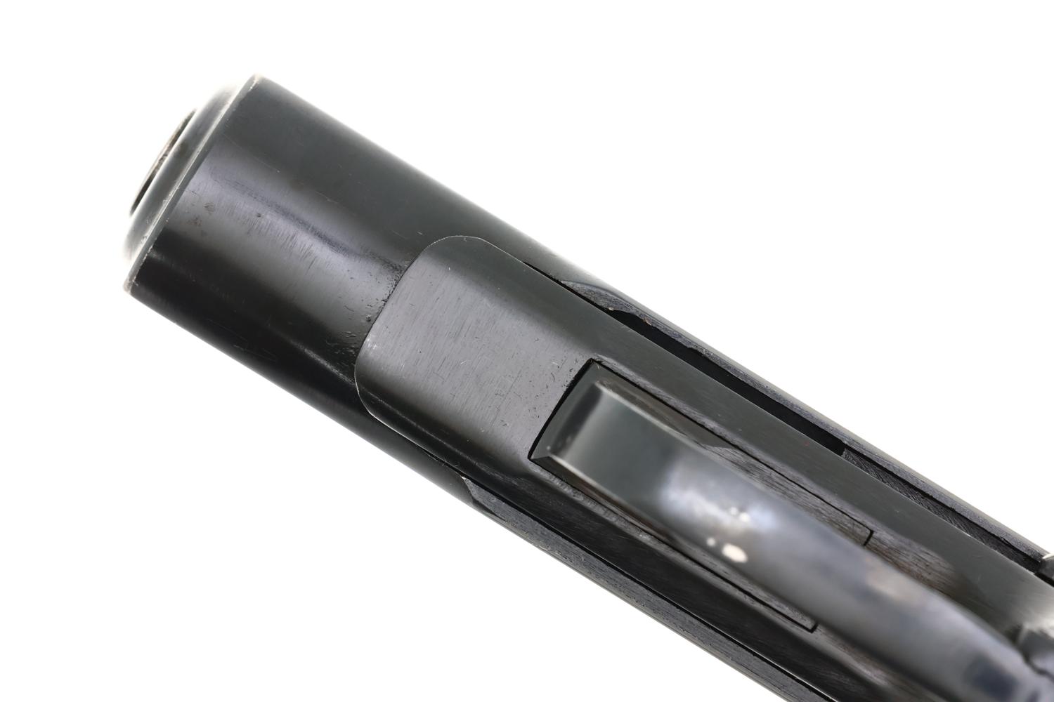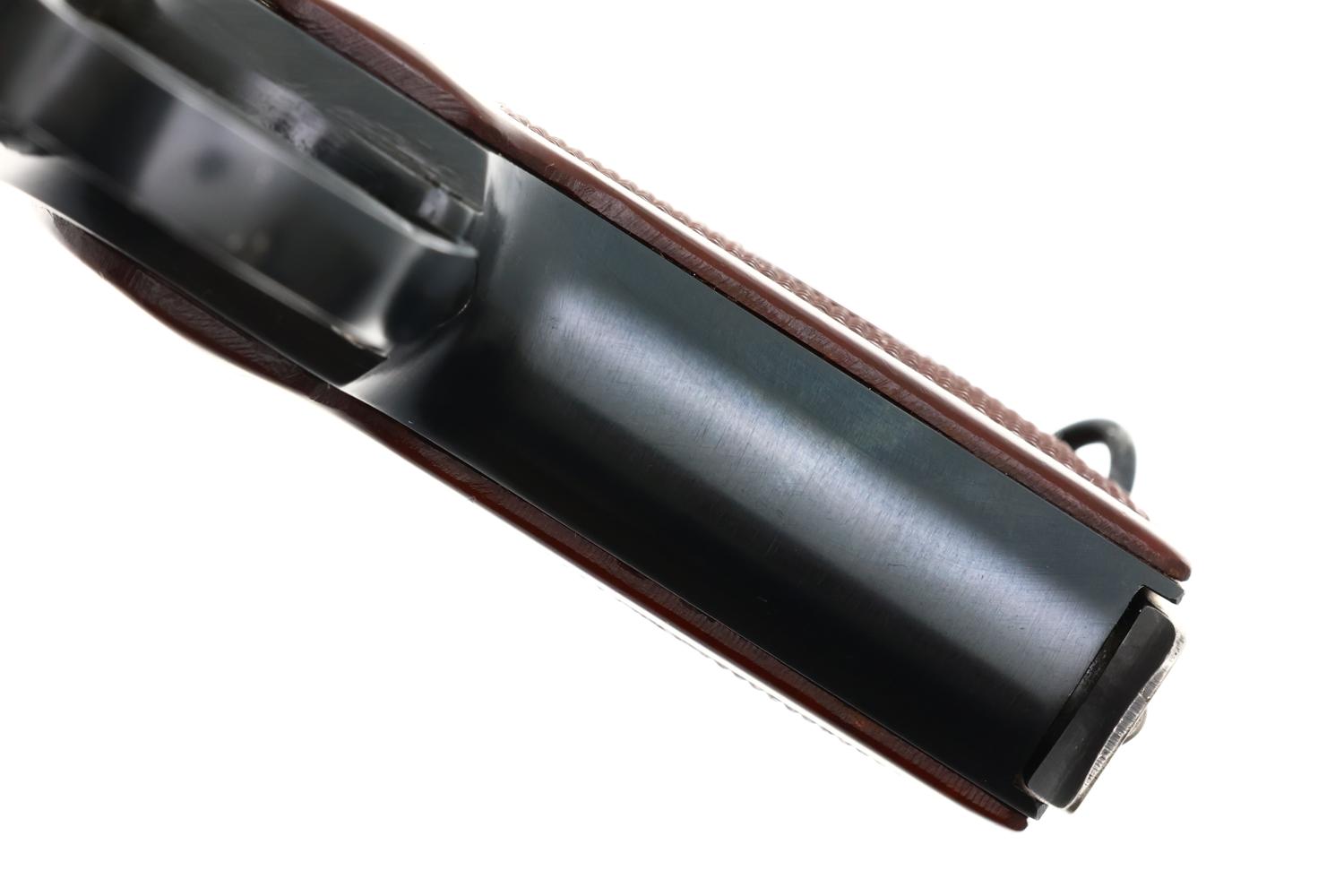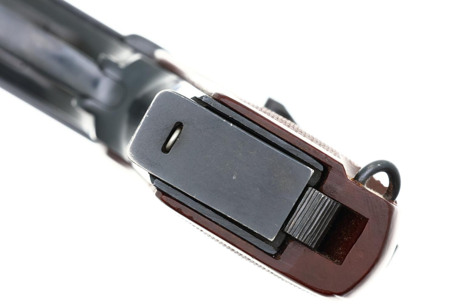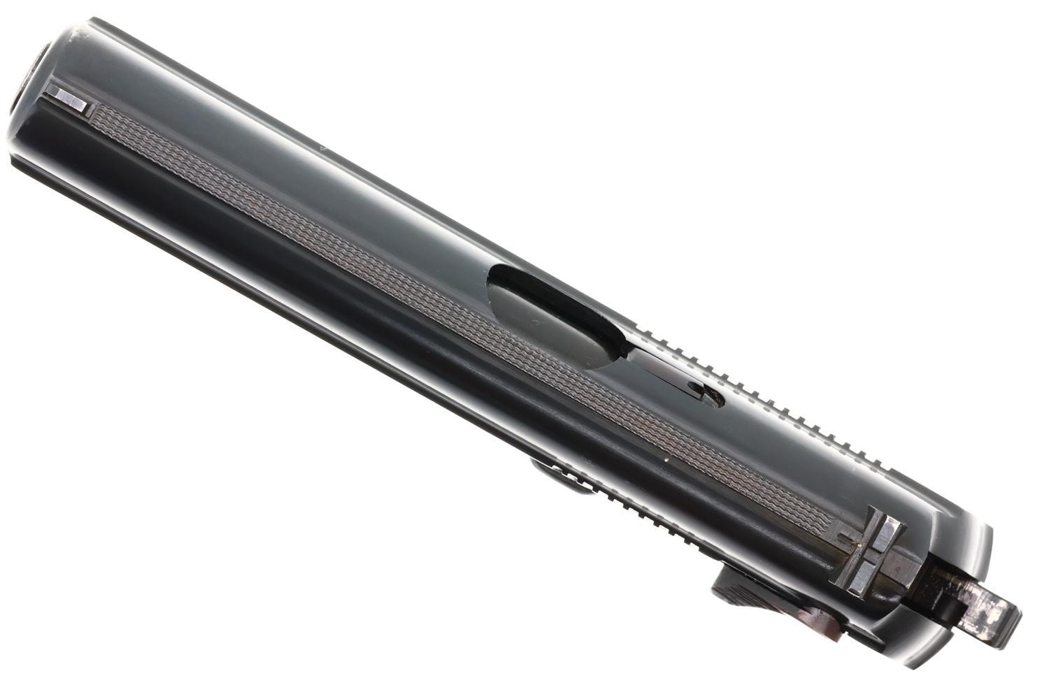 Crisp 98% original finish with light holster wear expected areas, particularly around the muzzle. Comparable condition grip and magazine that shows only minimal insertional wear. Mirror-bright bore. Correct manual mechanics.